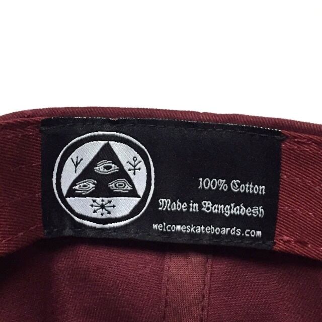Welcome Skateboards Symbol Peached Embroidered Dad Cap Maroon/Black (ウェルカム スケートボード シンボル ピーチド エンブロイダード ダッド キャップ マルーン/ブラック)
