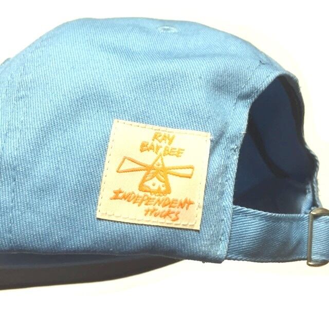 スケボー界の表現者とも評されるレジェンドスケーター兼ミュージシャン “レイバービー” コラボキャップ!!西海岸、カリフォルニア、リゾート雰囲気満々のパウダーブルーxオレンジによる配色がたまりません!ツバ裏をグレーで引き締めているのもポイント。