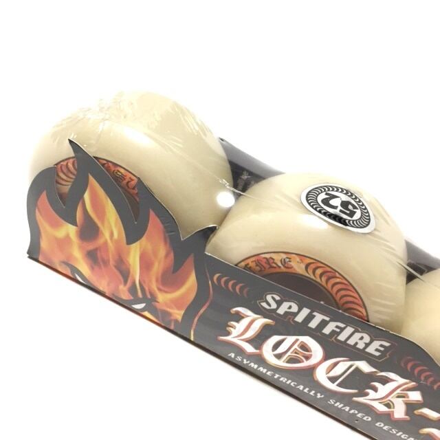 Lock-Ins Shape・・・スピットファイアの中でも一番接地面の広かったコニカルフル同様の接地面の広さがあり、裏表非対称のシェイプ。片側は中心が凹んだコニカル、もう片側はクラシックやラジアルの様な角を取った全体的に丸みを帯びたシェイプになっています。角丸側を内側にセッティングすることにより、グラインド等のリップトリックの抜けの良さを確保しつつも接地面が広く、安定感・スピード・グリップ等を兼ね揃えています。 1プッシュで進む距離もグッド。