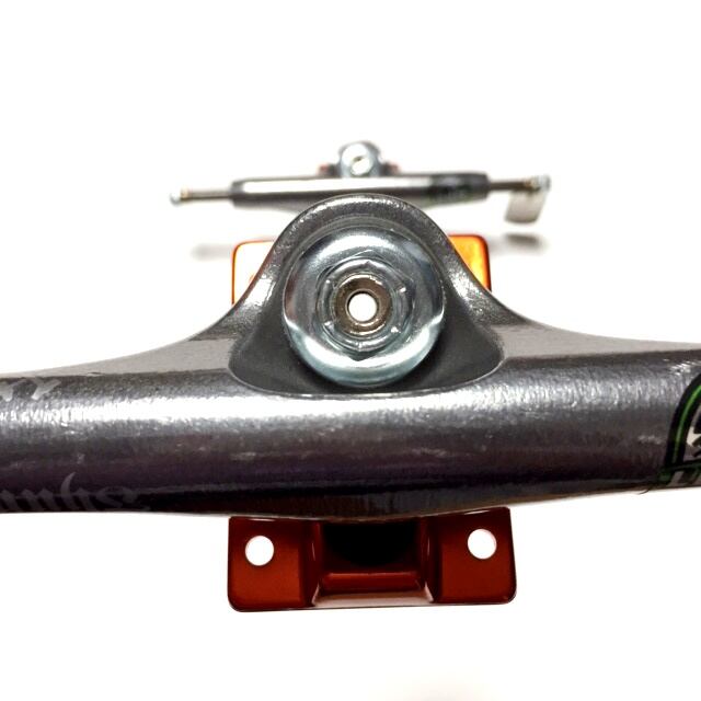 『Thunder・・・VENTURE(ベンチャー)よりは柔らかく、INDEPENDENT(インディペンデント)よりは固い、そんな風によく表現されます。オールラウンドにストリートでもパークでも使える良質ブランド♫』