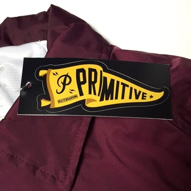 深いバーガンディー系の色マルーンカラー、ナイロン特有の光の反射と相まって非常に味わいのある仕上がりです。裏地は摩擦のないツルツル仕様で着脱時のストレスを軽減、袖はラグランスリーブにより動きやすく着心地の良さを追求した作りに。ブランドコンセプト通り細部にまでこだわり最高の服を作るというプリミティブらしい一枚です。ステッカーや裾にピスネームが付くのも嬉しいポイント。